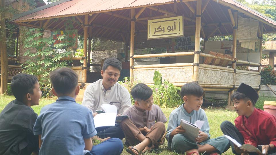 Guru-guru pendamping terlihat sebagai fasilitator yang mendukung, membimbing, dan menginspirasi siswa dalam pembelajaran di alam terbuka. Foto ini menangkap esensi pendidikan holistik di Sekolah Alam Tahfidzpreneur, di mana pembelajaran tidak terbatas pada ruang kelas, tetapi melibatkan eksplorasi alam dan penerapan pengetahuan dalam konteks nyata. Suatu momen yang memukau, menciptakan ikatan antara siswa dan alam sambil memberikan pengalaman pembelajaran yang tak terlupakan.