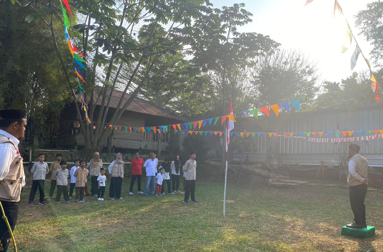 Suasana ceria dan kebersamaan terpancar dari ekspresi wajah siswa, menciptakan gambaran yang menarik tentang bagaimana Sekolah Alam Tahfidzpreneur merayakan kemerdekaan sebagai bagian integral dari pendidikan mereka. Foto ini memperlihatkan bahwa pembelajaran tidak hanya terjadi di dalam kelas, tetapi juga melalui penghormatan terhadap nilai-nilai kebangsaan dan kecintaan pada tanah air. Suatu momen yang memperingati kemerdekaan dengan penuh kebanggaan, memupuk rasa nasionalisme di antara generasi muda.