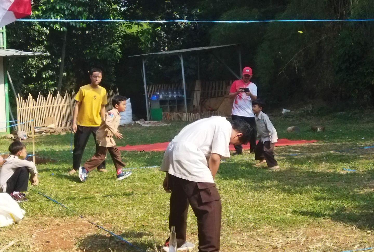Para siswa, dengan seragam mereka yang bersemangat, terlihat tertawa dan bersenang-senang saat mereka mengikuti berbagai tantangan dan permainan kreatif. Beberapa siswa terlihat mengikuti lomba balap kelereng dengan tekad yang tinggi, sementara yang lain bersaing dalam permainan estafet yang menggembirakan. Suasana kebersamaan dan semangat persaingan sehat tercermin dalam ekspresi wajah yang penuh antusiasme.